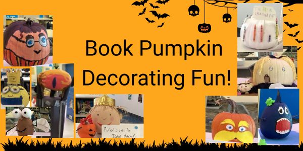 In October, the library celebrates the joy of reading with the joy of pumpkin carving/decorating.  This year our students out did themselves with some amazing decorated pumpkins of some of