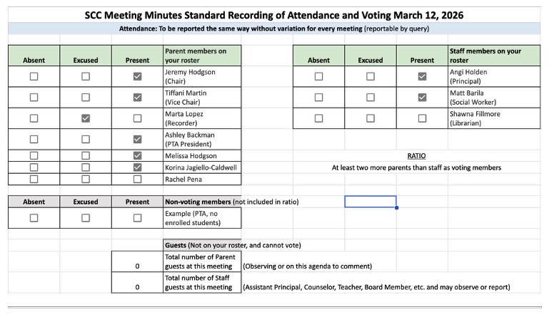 Members discussed recruitment efforts for next year and the possibility of reaching out through feeder school SCC meetings to identify interested parents.